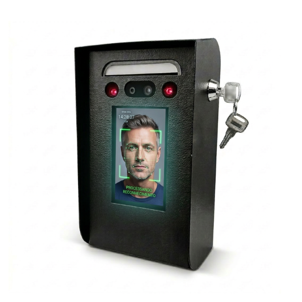 O gabinete conta com bateria interna integrada, oferecendo autonomia energética em caso de falhas ou variações de energia elétrica, mantendo o funcionamento contínuo do ponto eletrônico.